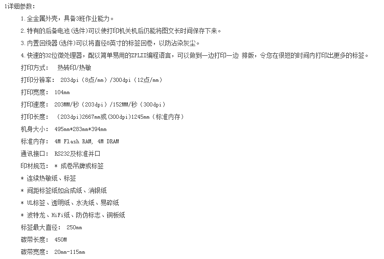 在105Se基础上增加了液晶面板控制,ZebraLink网络连接以及更大的内存空间等多项功能。